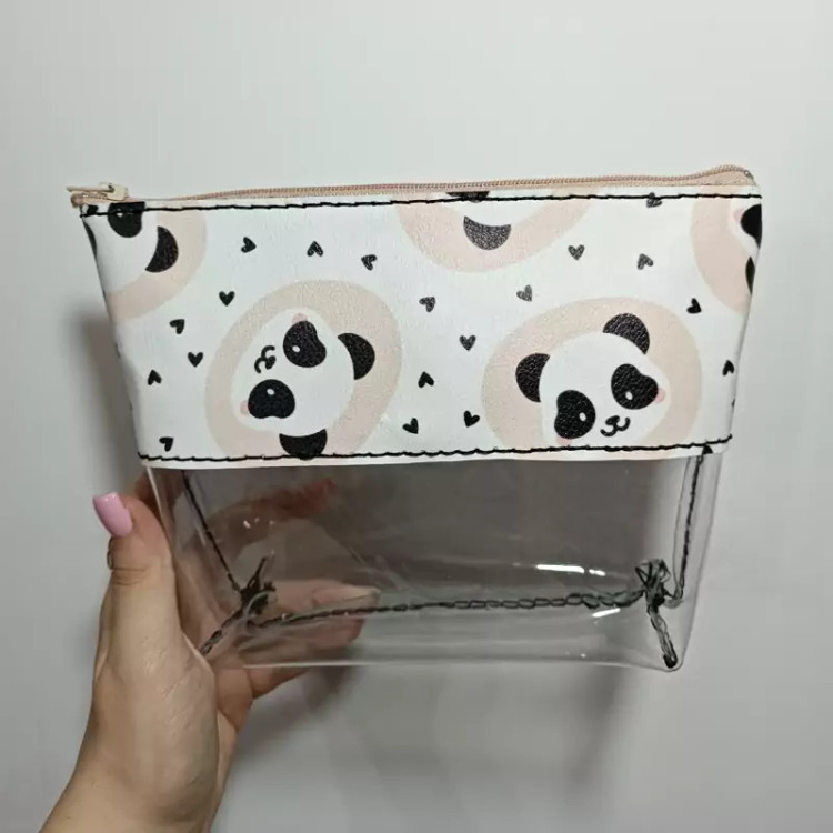 ابعاد 20در15در6 از چرم مصنوعی و طلق ساخته شده و کاملا دست دوز طرح پاندا