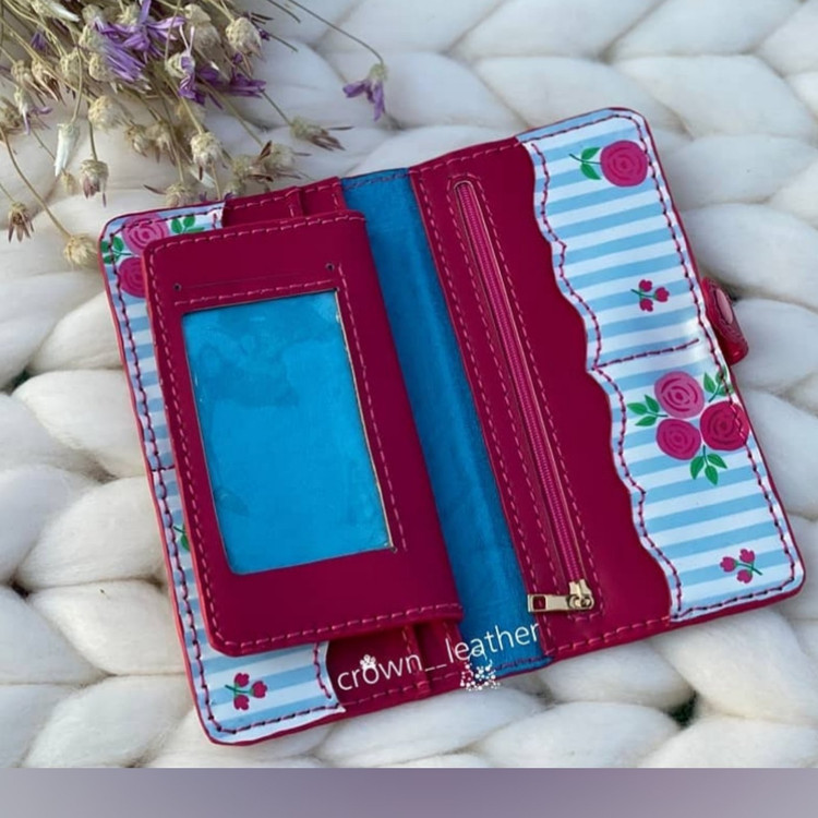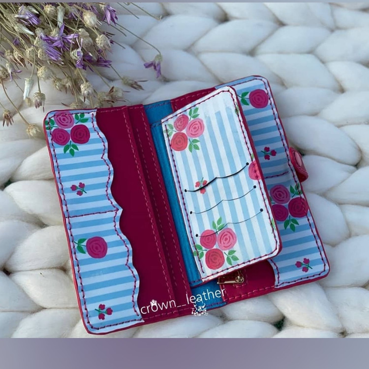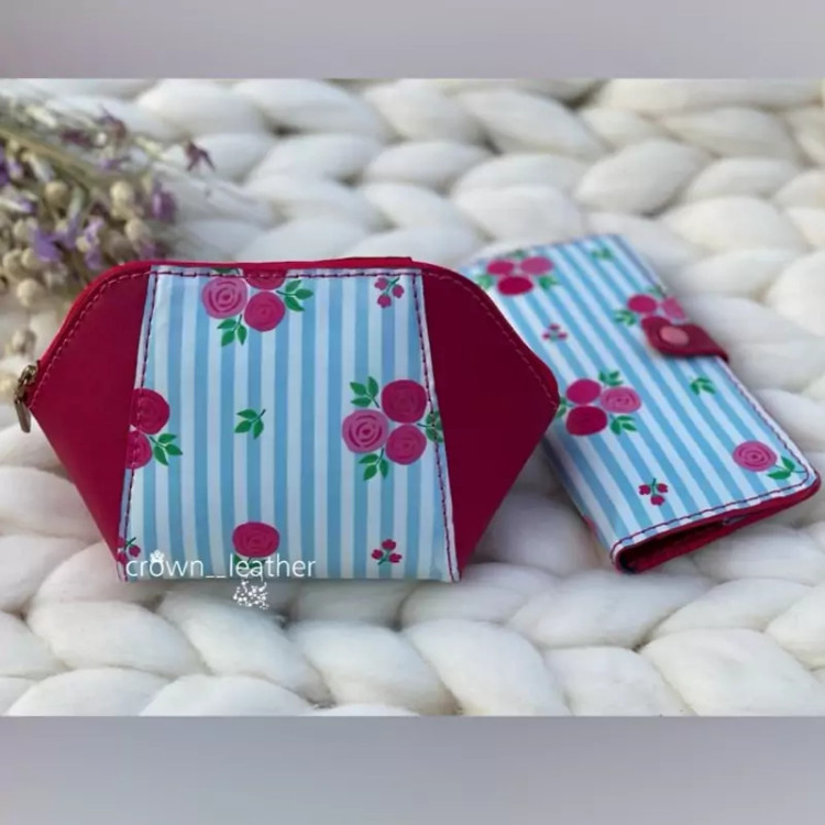 چرم مصنوعی کاملا دست دوز ابعاد کیف پول (10*19) ابعاد کیف آرایش (22*13)
